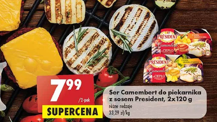 Przegl膮daj oferty promocyjne na produkt Ser camembert na ciep艂o z sosem gruszka z imbirem President