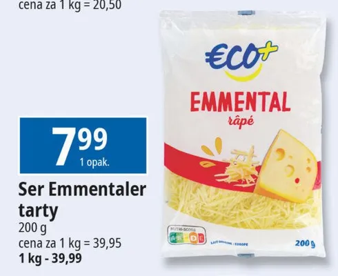 Cena produktu r贸偶ni si臋 w zale偶no艣ci od wybranego sklepu. Niestety nie posiadamy danych o aktualnych promocjach, jednak w艣r贸d archiwalnych ofert Ser emmentaler tarty Eco+ kosztuje od 7,99 z艂.
