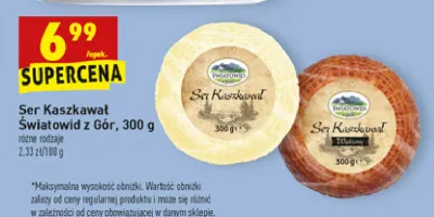 Cena produktu różni się w zależności od wybranego sklepu. Niestety nie posiadamy danych o aktualnych promocjach, jednak wśród archiwalnych ofert Ser kaszkawał z gór wędzony Światowid kosztuje od 6,99 zł.