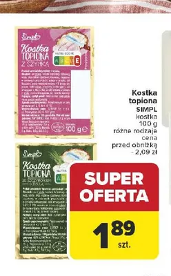 Cena produktu r贸偶ni si臋 w zale偶no艣ci od wybranego sklepu. Produkt Ser kostka ze szczypiorkiem i cebul膮 Simpl mo偶esz kupi膰 w promocji ju偶 . Najta艅sza oferta, jak膮 mamy w naszej bazie jest z sieci Carrefour. Ser kostka ze szczypiorkiem i cebul膮 Simpl kosztuje aktualnie . Zobacz ofert臋