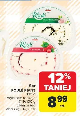 Cena produktu różni się w zależności od wybranego sklepu. Produkt Ser pleśniowy z żurawiną możesz kupić w promocji już od 6,99 zł do 8,99 zł. Najtańsza oferta, jaką mamy w naszej bazie jest z sieci Carrefour. Ser pleśniowy z żurawiną kosztuje aktualnie 6,99 zł. Zobacz ofertę