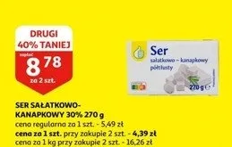 Cena produktu różni się w zależności od wybranego sklepu. Niestety nie posiadamy danych o aktualnych promocjach, jednak wśród archiwalnych ofert Ser sałatkowo-kanapkowy półtłusty Podniesiony kciuk kosztuje od 3,99 zł do 4,59 zł.