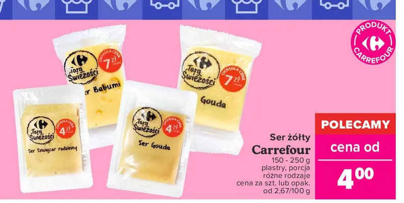Ile kosztuje Ser szwajcar rodzinny plastry Carrefour targ świeżości?