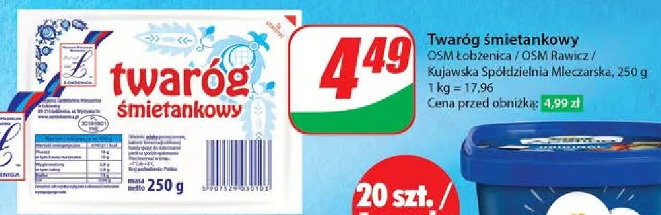 Przegl膮daj oferty promocyjne na produkt Ser twarogowy p贸艂t艂usty Osm rawicz