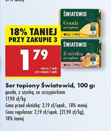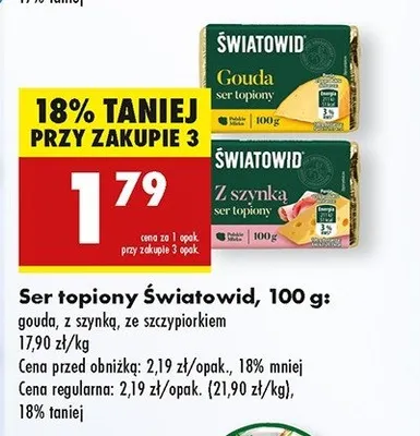 Cena produktu r贸偶ni si臋 w zale偶no艣ci od wybranego sklepu. Niestety nie posiadamy danych o aktualnych promocjach, jednak w艣r贸d archiwalnych ofert Ser ze szczypiorkiem 艢wiatowid kosztuje od 1,79 z艂.