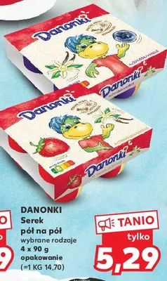 Cena produktu różni się w zależności od wybranego sklepu. Niestety nie posiadamy danych o aktualnych promocjach, jednak wśród archiwalnych ofert Serek jagoda-wanilia Danone danonki pół na pół kosztuje od 3,99 zł do 5,29 zł.