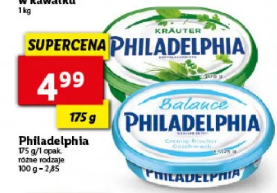 Cena produktu r贸偶ni si臋 w zale偶no艣ci od wybranego sklepu. Niestety nie posiadamy danych o aktualnych promocjach, jednak w艣r贸d archiwalnych ofert Serek kanapkowy z zio艂ami Philadelphia kosztuje od 4,99 z艂.