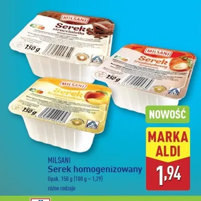 Zastanawiasz si臋, gdzie kupi膰 i ile kosztuje produkt Serek straciatella Milsani? Regularnie sprawdzamy, czy jest promocja na ten produkt w Biedronka, Lidl, Kaufland, Auchan, Netto, Makro i innych sklepach. Aktualnie nie posiadamy ofert promocyjnych na ten produkt.