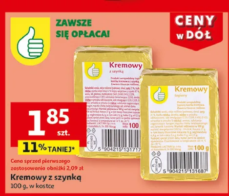 Cena produktu r贸偶ni si臋 w zale偶no艣ci od wybranego sklepu. Niestety nie posiadamy danych o aktualnych promocjach, jednak w艣r贸d archiwalnych ofert Serek topiony kremowy Podniesiony kciuk kosztuje od 1,85 z艂.