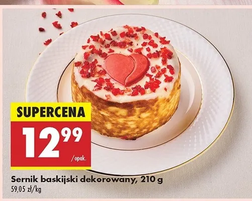 Cena produktu r贸偶ni si臋 w zale偶no艣ci od wybranego sklepu. Produkt Sernik baskijski dekorowany mo偶esz kupi膰 w promocji ju偶 od 12,99 z艂 do 15,9 z艂. Najta艅sza oferta, jak膮 mamy w naszej bazie jest z sieci Biedronka. Sernik baskijski dekorowany kosztuje aktualnie 12,99 z艂. Zobacz ofert臋