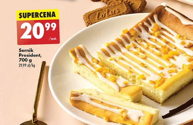 Cena produktu r贸偶ni si臋 w zale偶no艣ci od wybranego sklepu. Niestety nie posiadamy danych o aktualnych promocjach, jednak w艣r贸d archiwalnych ofert Sernik president kosztuje od 20,99 z艂.