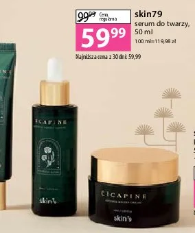 Cena produktu r贸偶ni si臋 w zale偶no艣ci od wybranego sklepu. Niestety nie posiadamy danych o aktualnych promocjach, jednak w艣r贸d archiwalnych ofert Serum do twarzy intensywnie regeneruj膮ce SKIN79 CICAPINE kosztuje od 59,99 z艂.