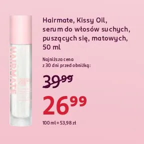 Cena produktu r贸偶ni si臋 w zale偶no艣ci od wybranego sklepu. Produkt Serum do w艂os贸w suchych Hairmate mo偶esz kupi膰 w promocji ju偶 od 24,99 z艂. Najta艅sza oferta, jak膮 mamy w naszej bazie jest z sieci Rossmann. Serum do w艂os贸w suchych Hairmate kosztuje aktualnie 24,99 z艂. Zobacz ofert臋