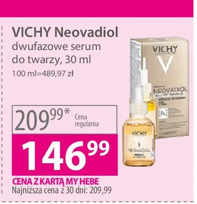 Cena produktu r贸偶ni si臋 w zale偶no艣ci od wybranego sklepu. Niestety nie posiadamy danych o aktualnych promocjach, jednak w艣r贸d archiwalnych ofert Serum kompleks uzupe艂niaj膮cy do twarzy Vichy neovadiol kosztuje od 146,99 z艂.