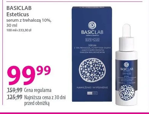 Ile kosztuje Serum z 15% trehaloz膮 peptydem snap-8 10% i kwasem hialuronowym BASICLAB ESTETICUS?