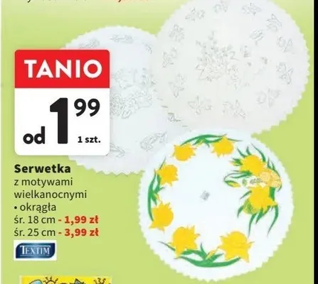 Serwetka z motywem wielkanocnym 25 cm Textim aktualnie nie wyst臋puje w bazie naszych gazetek promocyjnych. Nie martw si臋! Gdy tylko pojawi si臋 ciekawa promocja na Serwetka z motywem wielkanocnym 25 cm Textim, umie艣cimy j膮 na naszej stronie
