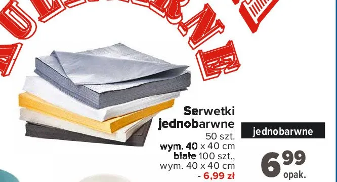 Serwetki jednokolorowe 40 x 40 cm aktualnie nie wyst臋puje w bazie naszych gazetek promocyjnych. Nie martw si臋! Gdy tylko pojawi si臋 ciekawa promocja na Serwetki jednokolorowe 40 x 40 cm, umie艣cimy j膮 na naszej stronie