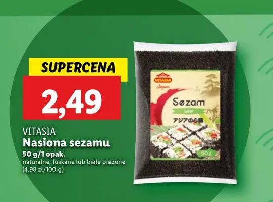 Cena produktu r贸偶ni si臋 w zale偶no艣ci od wybranego sklepu. Niestety nie posiadamy danych o aktualnych promocjach, jednak w艣r贸d archiwalnych ofert Sezam obrany Vitasia japan kosztuje od 2,49 z艂.