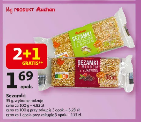 Ile kosztuje Sezamki z miodem i żurawiną Auchan różnorodne (logo czerwone)?