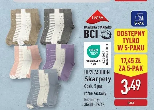 Zastanawiasz si臋, gdzie kupi膰 i ile kosztuje produkt Skarpetki 35/38-39/42 Up2fashion? Regularnie sprawdzamy, czy jest promocja na ten produkt w Biedronka, Lidl, Kaufland, Auchan, Netto, Makro i innych sklepach. Aktualnie nie posiadamy ofert promocyjnych na ten produkt.