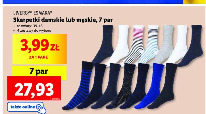 Cena produktu r贸偶ni si臋 w zale偶no艣ci od wybranego sklepu. Niestety nie posiadamy danych o aktualnych promocjach, jednak w艣r贸d archiwalnych ofert Skarpetki damskie Livergy kosztuje od 27,93 z艂.