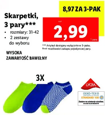 Zastanawiasz si臋, gdzie kupi膰 i ile kosztuje produkt Skarpetki dzieci臋ce 31-42? Regularnie sprawdzamy, czy jest promocja na ten produkt w Biedronka, Lidl, Kaufland, Auchan, Netto, Makro i innych sklepach. Aktualnie nie posiadamy ofert promocyjnych na ten produkt.