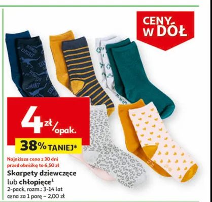 Cena produktu r贸偶ni si臋 w zale偶no艣ci od wybranego sklepu. Niestety nie posiadamy danych o aktualnych promocjach, jednak w艣r贸d archiwalnych ofert Skarpetki dziewcz臋ce kosztuje od 4 z艂 do 20 z艂.