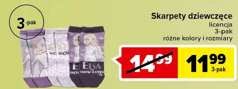 Cena produktu r贸偶ni si臋 w zale偶no艣ci od wybranego sklepu. Niestety nie posiadamy danych o aktualnych promocjach, jednak w艣r贸d archiwalnych ofert Skarpetki dziewcz臋ce kraina lodu kosztuje od 11,99 z艂.