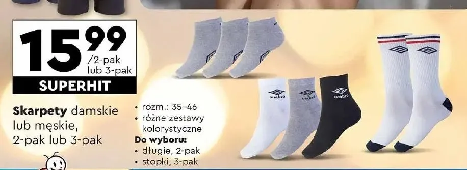 Przegl膮daj podobne oferty promocyjne do Skarpetki m臋skie 35-46 Umbro!