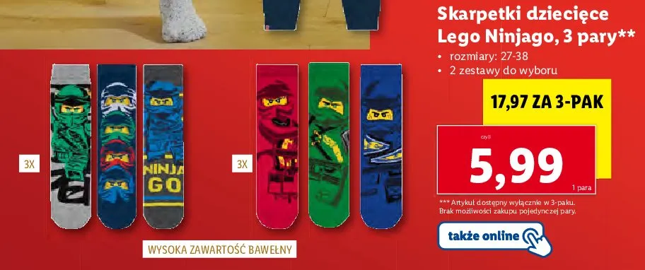 Gdzie mo偶na tanio kupi膰 produkt Skarpety dzieci臋ce 27-38 lego ninjago?