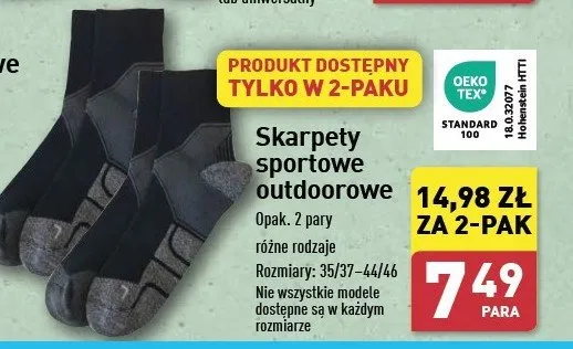 Zastanawiasz si臋, gdzie kupi膰 i ile kosztuje produkt Skarpety sportowe m臋skie? Regularnie sprawdzamy, czy jest promocja na ten produkt w Biedronka, Lidl, Kaufland, Auchan, Netto, Makro i innych sklepach. Aktualnie posiadamy 1 ofert臋 promocyjn膮 na ten produkt. Ceny zaczynaj膮 si臋 od 19,99z艂!