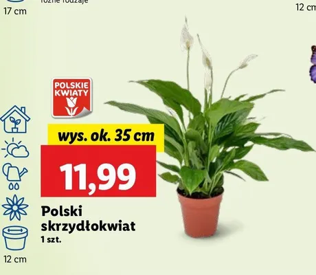 Cena produktu r贸偶ni si臋 w zale偶no艣ci od wybranego sklepu. Produkt Skrzyd艂okwiat 35 cm mo偶esz kupi膰 w promocji ju偶 od 13,99 z艂. Najta艅sza oferta, jak膮 mamy w naszej bazie jest z sieci Auchan. Skrzyd艂okwiat 35 cm kosztuje aktualnie 13,99 z艂. Zobacz ofert臋