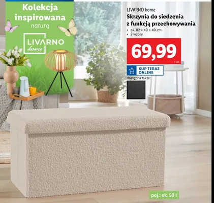 Cena produktu r贸偶ni si臋 w zale偶no艣ci od wybranego sklepu. Niestety nie posiadamy danych o aktualnych promocjach, jednak w艣r贸d archiwalnych ofert Skrzynia do siedzenia 82 x 40 x 40 cm LIVARNO HOME kosztuje od 69,99 z艂.