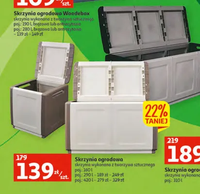 Zastanawiasz si臋, gdzie kupi膰 i ile kosztuje produkt Skrzynia ogrodowa 160 l? Regularnie sprawdzamy, czy jest promocja na ten produkt w Biedronka, Lidl, Kaufland, Auchan, Netto, Makro i innych sklepach. Aktualnie posiadamy 6 ofert promocyjnych na ten produkt. Ceny zaczynaj膮 si臋 od 149,00z艂!