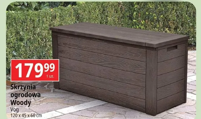 Cena produktu r贸偶ni si臋 w zale偶no艣ci od wybranego sklepu. Niestety nie posiadamy danych o aktualnych promocjach, jednak w艣r贸d archiwalnych ofert Skrzynia ogrodowa woody 120 x 45 x 60 cm Vog kosztuje od 179,99 z艂.