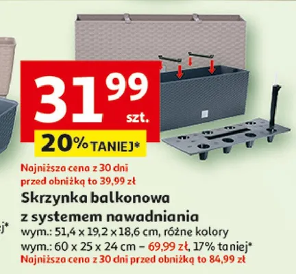 Zastanawiasz si臋, gdzie kupi膰 i ile kosztuje produkt Skrzynka balkonowa z systemem nawadniania 51.4 x 19.2 x 18.6 cm? Regularnie sprawdzamy, czy jest promocja na ten produkt w Biedronka, Lidl, Kaufland, Auchan, Netto, Makro i innych sklepach. Aktualnie nie posiadamy ofert promocyjnych na ten produkt.