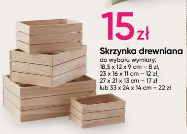 Cena produktu r贸偶ni si臋 w zale偶no艣ci od wybranego sklepu. Niestety nie posiadamy danych o aktualnych promocjach, jednak w艣r贸d archiwalnych ofert Skrzynka drewniana 27 x 21 x 13 cm kosztuje od 17 z艂.