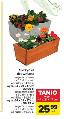 Cena produktu r贸偶ni si臋 w zale偶no艣ci od wybranego sklepu. Niestety nie posiadamy danych o aktualnych promocjach, jednak w艣r贸d archiwalnych ofert Skrzynka drewniana 54 x 21 x 17 cm kosztuje od 32,99 z艂.