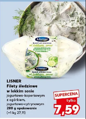 Ile kosztuje 艢led藕 atlantycki w lekkim sosie jogurtowo koperkowym z og贸rkiem Lisner?