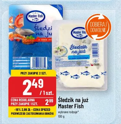 Cena produktu różni się w zależności od wybranego sklepu. Niestety nie posiadamy danych o aktualnych promocjach, jednak wśród archiwalnych ofert Śledzik na już w sosie śmietanowym kosztuje od 1 zł do 2,59 zł.