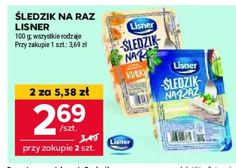 Przegl膮daj podobne oferty promocyjne do 艢ledzik na raz w sosie koperkowym Lisner 艣ledzik na raz!
