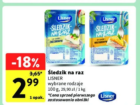 Ile kosztuje 艢ledzik na raz w sosie musztardowym Lisner 艣ledzik na raz?