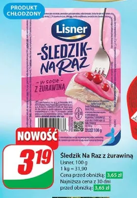 Gdzie można tanio kupić produkt Śledzik na raz w sosie śmietankowym z żurawiną Lisner śledzik na raz?