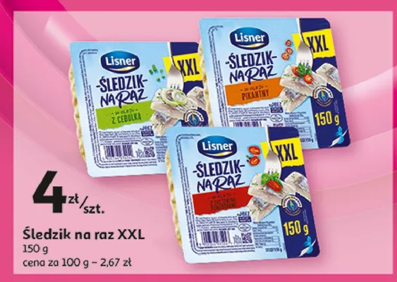 Cena produktu r贸偶ni si臋 w zale偶no艣ci od wybranego sklepu. Niestety nie posiadamy danych o aktualnych promocjach, jednak w艣r贸d archiwalnych ofert 艢ledzik pikantny Lisner 艣ledzik na raz kosztuje od 4 z艂 do 5,39 z艂.