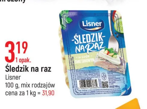 Przegl膮daj oferty promocyjne na produkt 艢ledzik w sosie 艣mietanowym Lisner 艣ledzik na raz