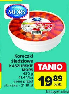 Cena produktu r贸偶ni si臋 w zale偶no艣ci od wybranego sklepu. Niestety nie posiadamy danych o aktualnych promocjach, jednak w艣r贸d archiwalnych ofert 艢ledziki kaszebszczie Mors ryby kosztuje od 19,89 z艂.