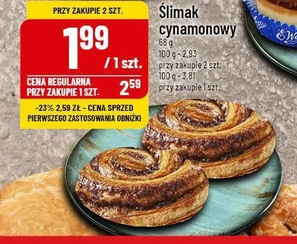 Cena produktu r贸偶ni si臋 w zale偶no艣ci od wybranego sklepu. Niestety nie posiadamy danych o aktualnych promocjach, jednak w艣r贸d archiwalnych ofert 艢limak cynamonowy kosztuje od 1,59 z艂 do 2,39 z艂.