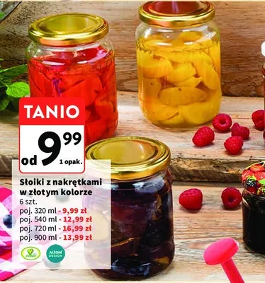 Cena produktu r贸偶ni si臋 w zale偶no艣ci od wybranego sklepu. Niestety nie posiadamy danych o aktualnych promocjach, jednak w艣r贸d archiwalnych ofert S艂oiki ze z艂otymi nakr臋tkami 720 ml Altom design kosztuje od 16,99 z艂.