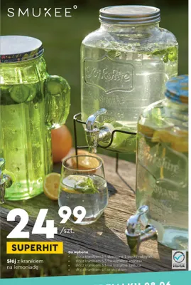 Cena produktu r贸偶ni si臋 w zale偶no艣ci od wybranego sklepu. Niestety nie posiadamy danych o aktualnych promocjach, jednak w艣r贸d archiwalnych ofert S艂贸j z kranikiem i stojakiem 4 l Smukee kitchen kosztuje od 24,99 z艂.