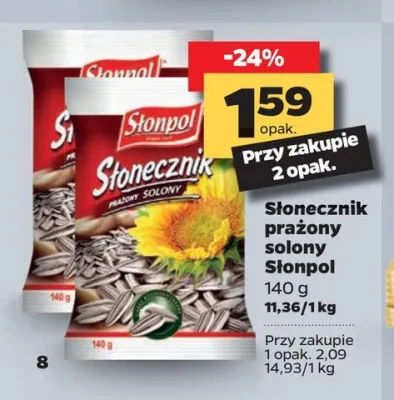 Cena produktu różni się w zależności od wybranego sklepu. Niestety nie posiadamy danych o aktualnych promocjach, jednak wśród archiwalnych ofert Słonecznik prażony solony Słonpol kosztuje od 1,59 zł do 1,69 zł.